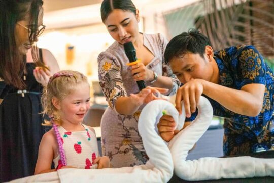 Untuk memeriahkan Hari Batik di hotel, Grand Mercure Bali Seminyak bekerja sama dengan dua UKM lokal yang berfokus pada pada Batik Nusantara dan Endek Bali, dengan mengadakan pameran yang dikurasi secara khusus dari tanggal 15 hingga 20 Oktober 2024 di Lobby Grand Mercure Bali Seminyak yang menampilkan keindahan kain Batik dan Endek. Selain itu, hotel juga mengadakan workshop Towel Art pada 15 Oktober, di mana 30 tamu yang antusias belajar cara membuat desain handuk yang dihias dengan motif Batik, dipimpin oleh tim housekeeping. Upaya kolaboratif ini tidak hanya mendukung usaha lokal, tetapi juga memberikan pengalaman budaya yang kaya dan tak terlupakan bagi tamu-tamu kami, yang mencerminkan komitmen hotel dalam mengangkat potensi lokal.