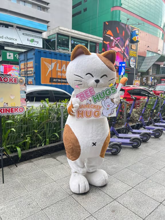 On October 25, 2024, Karaoke Manekineko’s Bukit Bintang outlet hosted a heartwarming “Free Hug with Maneckey” event, giving customers the opportunity to embrace Maneckey, share their experiences, and receive a 10% discount coupon for future visits. The event saw enthusiastic participation, spreading joy and connecting with the community.