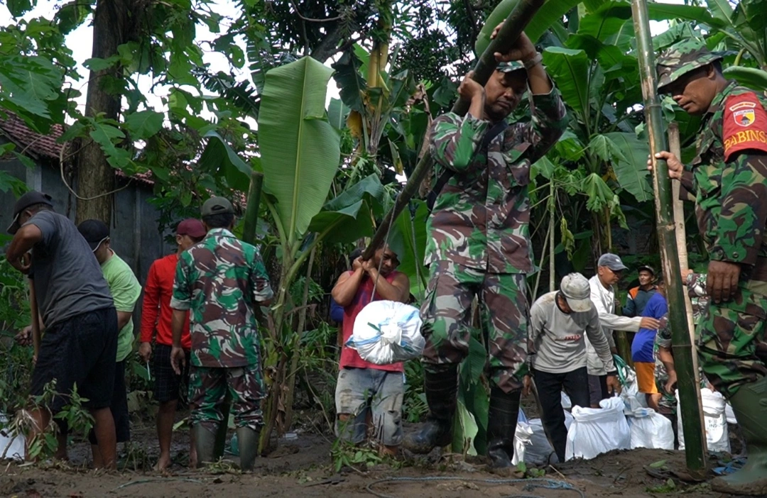 Ponorogo, – Berbekal Kemanunggalan TNI-Rakyat, para prajurit TNI dari Kodim 0802/Ponorogo bersama aparat kepolisian dan masyarakat bahu-membahu memperbaiki kembali tanggul jebol di Desa Jetis, Kecamatan Jetis, Kabupaten Ponorogo, Jumat (20/12/2024). Tanggul jebol itu akibat banjir bandang yang menerjang Ponorogo beberapa hari lalu.