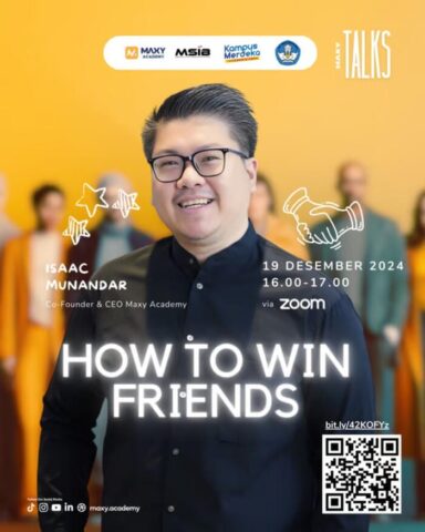 Surabaya – Buku legendaris “How to Win Friends and Influence People” karya Dale Carnegie kembali jadi sorotan. Dalam acara MAXY Talks bertajuk “How to Win Friends” yang berlangsung pada Kamis, 19 Desember 2024, Isaac Munandar selaku CEO MAXY Academy membedah prinsip-prinsip komunikasi dan relasi interpersonal yang relevan untuk kehidupan profesional dan pribadi.