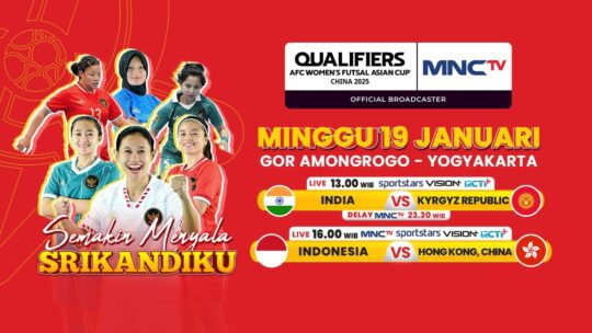 Dilaga terakhir, Timnas Futsal Indonesia berhadapan dengan Hongkong China pada Minggu, 19 Januari 2024, pukul 16.00 WIB ditayangkan secara langsung di MNCTV.