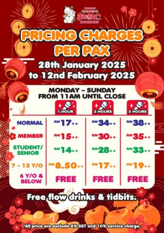 All prices exclude 8% SST and 10% service charges. Don’t miss this opportunity to create joyful memories during the Chinese New Year festivities at Karaoke Manekineko. Make your reservations early to secure your spot and celebrate in style!