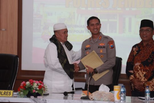 Jember, Nusantarapos.co.id – Kapolres Jember AKBP Bayu Pratama Gubunagi menggelar silaturrahmi dengan puluhan ulama dan tokoh masyarakat (Tomas) di Jember yang tergabung dalam Masyarakat Peduli Jember, Sabtu (1/2/2025).
