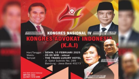 Jakarta, NUSANTARAPOS.CO.ID – Kongres Advokat Indonesia (KAI) pimpinan Presiden Siti Jamaliah Lubis S.H akan menggelar Kongres Nasional ke-IV, yang akan dilaksanakan pada Senin, 10 Februari 2025. Bertempat di Trans Luxury Hotel, Jl. Gatot Subroto No. 289, Kota Bandung, Jawa Barat.