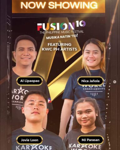 Join us at #FusionMNL2025 as we witness the fierce performances of AL Lipaopao, Nica Jañola, Jovie Loon, and Mary Joy Parasan, who made their mark at the KWC – Karaoke World Championships Philippines 2024! Experience an unforgettable showcase of Filipino passion and pride this March 15, 2025 at the CCP Open Grounds!