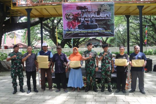 Dalam acara syukuran HUT ke-75 Kavaleri TNI AD di Madiun itu juga dilaksanakan Baksos dengan memberikan berbagai paket sembako kepada masyarakat kurang mampu dan keluarga pra sejahtera.