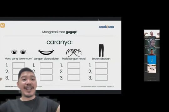“Public speaking bukan hanya soal berbicara di depan umum, tetapi juga bagaimana kita bisa membangun koneksi dengan audiens melalui penyampaian yang efektif,” ujar Indra dalam sesi webinar.