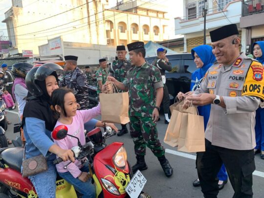 Nusantara pos.co.id – Bagi takjil dan berbuka puasa bersama lagi lagi menjadi agenda ditengah padatnya kegiatan TNI POLRI di Kabupaten Nunukan. Sore tadi, Sabtu tanggal 29 Maret 2025 Pukul 18.00 Wita, bertempat di depan Cafe Sayn Kab. Nunukan Prov. Kaltara telah di laksanakan pembagian takjil dan buka puasa bersama TNI – POLRI Ramadhan 1446 Hijriah/2025 Masehi dalam rangka meningkatkan Sinergitas di wilayah Kabupaten Nunukan.