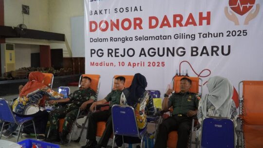 Madiun, – Belasan prajurit TNI dari satuan Korem 081/DSJ ambil bagian dalam kegiatan donor darah yang diselenggarakan oleh PG. Rejo Agung, bertempat di Graha Rajawali PG. Rejo Agung, Kota Madiun, Kamis (10/4/2025). Donor darah itu dalam rangka menjelang buka giling pabrik gula tersebut.