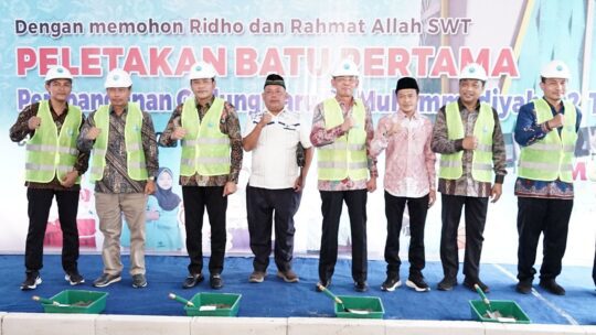 Bupati Subandi berharap pembangunan gedung baru SD Muhammadiyah 1 dan 2 Taman, yang dikenal dengan sebutan SD Mumtaz, tersebut mampu memperkuat kontribusi Muhammadiyah dalam pembangunan daerah, khususnya di bidang pendidikan. (Aryo)