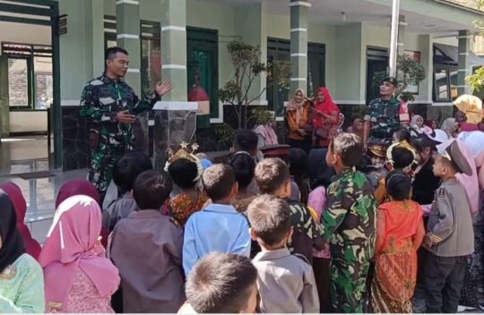 “Tadi kita sampaikan kepada anak-anak tentang apa itu TNI dan apa tugas-tugasnya. Termasuk juga macam-macam atribut yang dikenakan,” kata personel Koramil 0804/13 Bendo, Pelda Roni selaku instruktur.