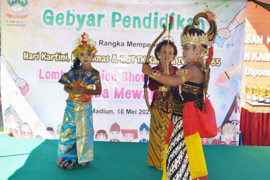 Madiun, – Gebyar Pendidikan dalam rangka memperingati Hari Kartini, Hardiknas (Hari Pendidikan Nasional), dan HUT TK Kartika IV-17 ke-65 digelar di TK Kartika IV-17, Jl. Diponegoro 39 Kota Madiun, Jumat (16/5/2025). Ajang itu dilakukan dalam bentuk lomba fashion show baju adat dan lomba mewarnai.