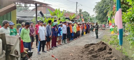 Kegiatan TMMD di Desa Kaliwungu telah memasuki minggu kedua dengan sejumlah sasaran fisik dan non-fisik yang terus dikebut, di antaranya pembangunan jalan rabat beton penghubung antar dusun, renovasi rumah tidak layak huni, serta penyuluhan kesehatan dan wawasan kebangsaan bagi masyarakat.