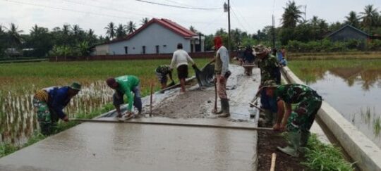 “Sudah lama kami menunggu jalan ini diperbaiki. Sekarang dengan adanya TMMD, saya dan warga lainnya merasa senang dan bangga bisa ikut membantu,” ujar Wardi sambil terus meratakan adukan beton.