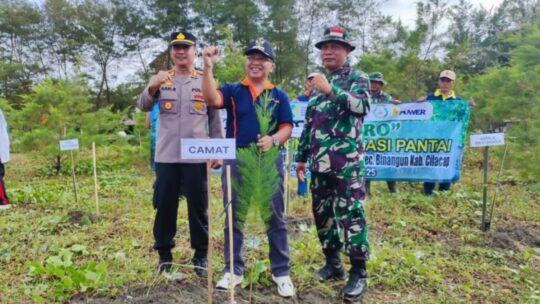 Cilacap – Dalam rangka memperingati Hari Lingkungan Hidup Sedunia, Danramil 08/Adipala, Kapten Cba Gunawan Wisasmita, SH., bersama anggota beserta pejabat pemerintahan Kecamatan Adipala dan warga sekitar melaksanakan kegiatan penanaman mangrove bertempat di Pantai Indah Sodong, Desa Karangbenda, Kecamatan Adipala, Kabupaten Cilacap pada Kamis (05/06/2025).