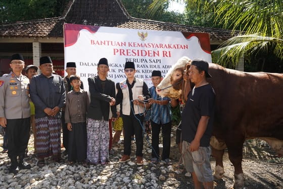 “Alhamdulillah, saya hanya menyampaikan amanah dari Presiden. Saya dititipi surat dari Kantor Sekretariat Negara untuk mencarikan hewan kurban yang layak. Setelah melalui seleksi, ditemukan sapi milik peternak bernama Rori yang memenuhi kriteria,” jelas Bupati yang akrab disapa Mas Ipin.