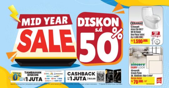 “Kami ingin setiap keluarga Indonesia bisa melakukan renovasi rumah dan memperbarui perabotan rumah dengan cara yang hemat, praktis, dan tetap berkualitas. Melalui promo Mid Year Sale ini, kami berharap bisa memberikan solusi belanja yang tepat di tengah meningkatnya kebutuhan akan kenyamanan tempat tinggal,” ujar Erick Koswara.