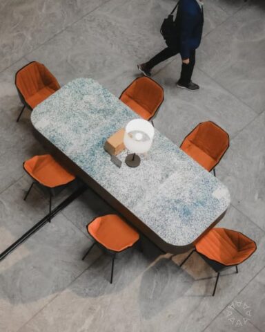 Ada detail istimewa yang membuat CHAPTERS 2.0 lebih unik dan bermakna. Bersama 4GoodThings, ASHTA mengaplikasikan meja baca yang terbuat dari lebih dari 320.000 botol plastik daur ulang. Meja-meja ini menjadi bukti bahwa keberlanjutan bisa diwujudkan tanpa kehilangan sentuhan estetika. Sambil membaca, Anda bisa merasakan tekstur meja yang dulunya limbah, kini menjadi tempat lahirnya ide-ide baru.