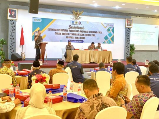 TUBAN – NUSANTARAPOS – Kantor Wilayah Bea Cukai Jawa Timur I menggelar sosialisasi ketentuan peraturan perundang-undangan di bidang cukai dalam rangka pemberantasan rokok ilegal di wilayah Kabupaten Tuban, di Kayu Manis Resto, Jumat (25/07).