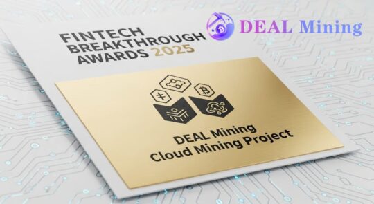 DEAL Mining was awarded in the 2025 FinTech Breakthrough Annual List for its innovations in AI-powered cloud mining and green energy practices. The announcement was made in London in July 2025 and shared globally through press releases and official channels. The recognition highlights DEAL Mining’s commitment to secure, efficient, and sustainable crypto mining services.