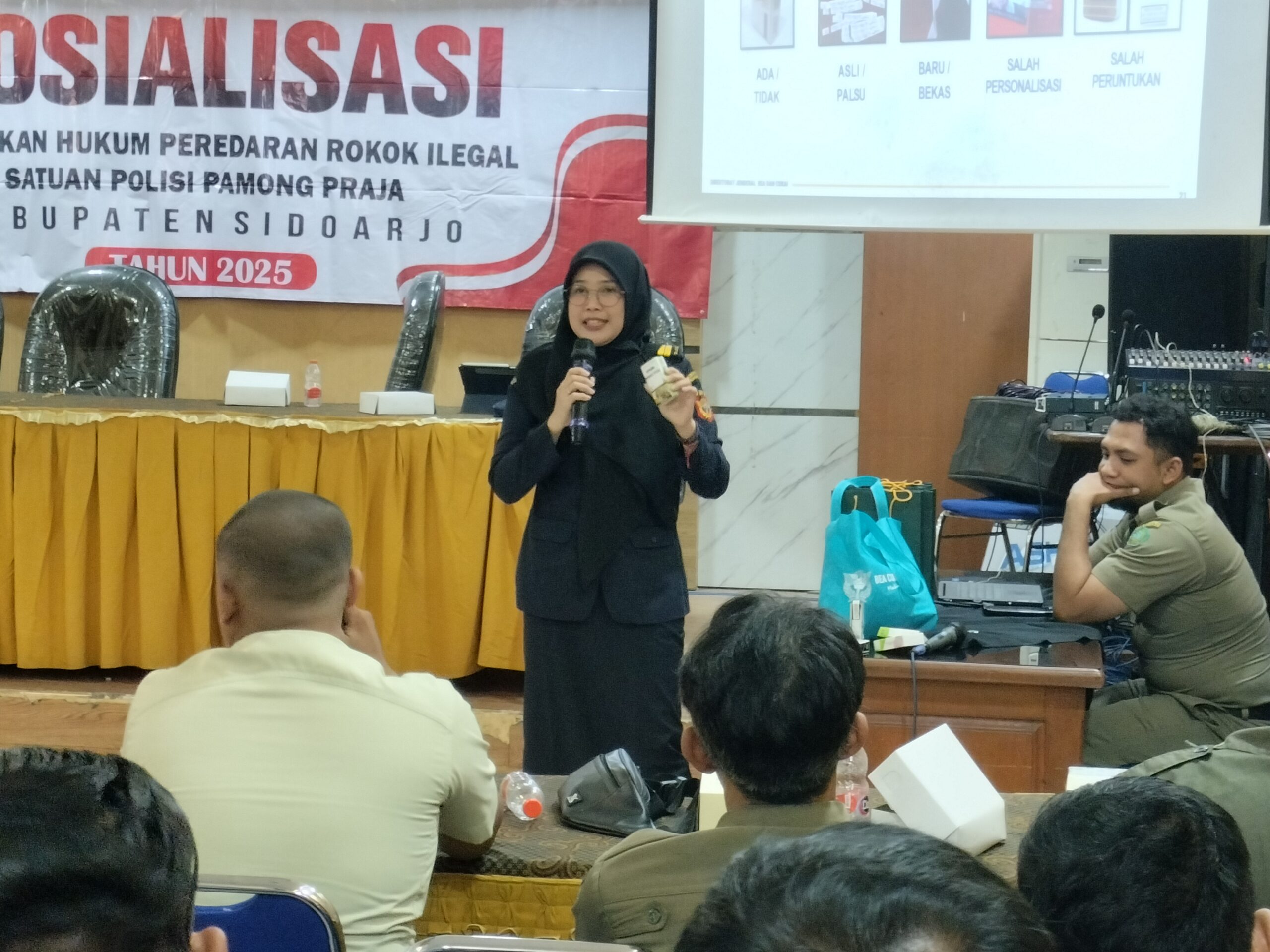 SIDOARJO, NUSANTARAPOS – Satuan Polisi Pamong Praja (Satpol PP) Kabupaten Sidoarjo gelar Sosialisasi Penegakan Hukum Peredaran Rokok Ilegal di Kantor Kecamatan Sidoarjo Kabupaten Sidoarjo. Acara Sosialisasi tersebut bekerjasama antara Pemerintah Daerah Kabupaten Sidoarjo, Bea Cukai & Satpol PP Kabupaten Sidoarjo, dilaksanakan di Aula Kantor Kecamatan Sidoarjo, Senin (4/8/2025).