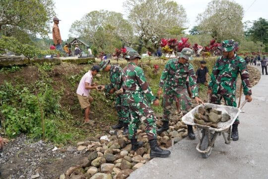 Anggota Satgas TMMD Keroyok Pemasangan Berem Jalan