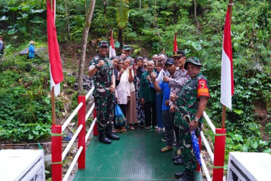 BLITAR,NUSANTARAPOS,- Jembatan merah putih di Desa Krisik, Kecamatan Gandusari, Kabupaten Blitar mencuri perhatian. Jembatan yang dibangun Satgas TMMD ke 127 Kodim 0808/Blitar ini terlihat Kokoh dan gagah dan menarik untuk dijadikan spot foto.