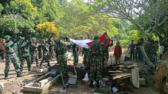 Prosesi berlangsung khidmat dengan dihadiri oleh anggota TNI, perangkat desa, keluarga almarhum, serta masyarakat setempat.