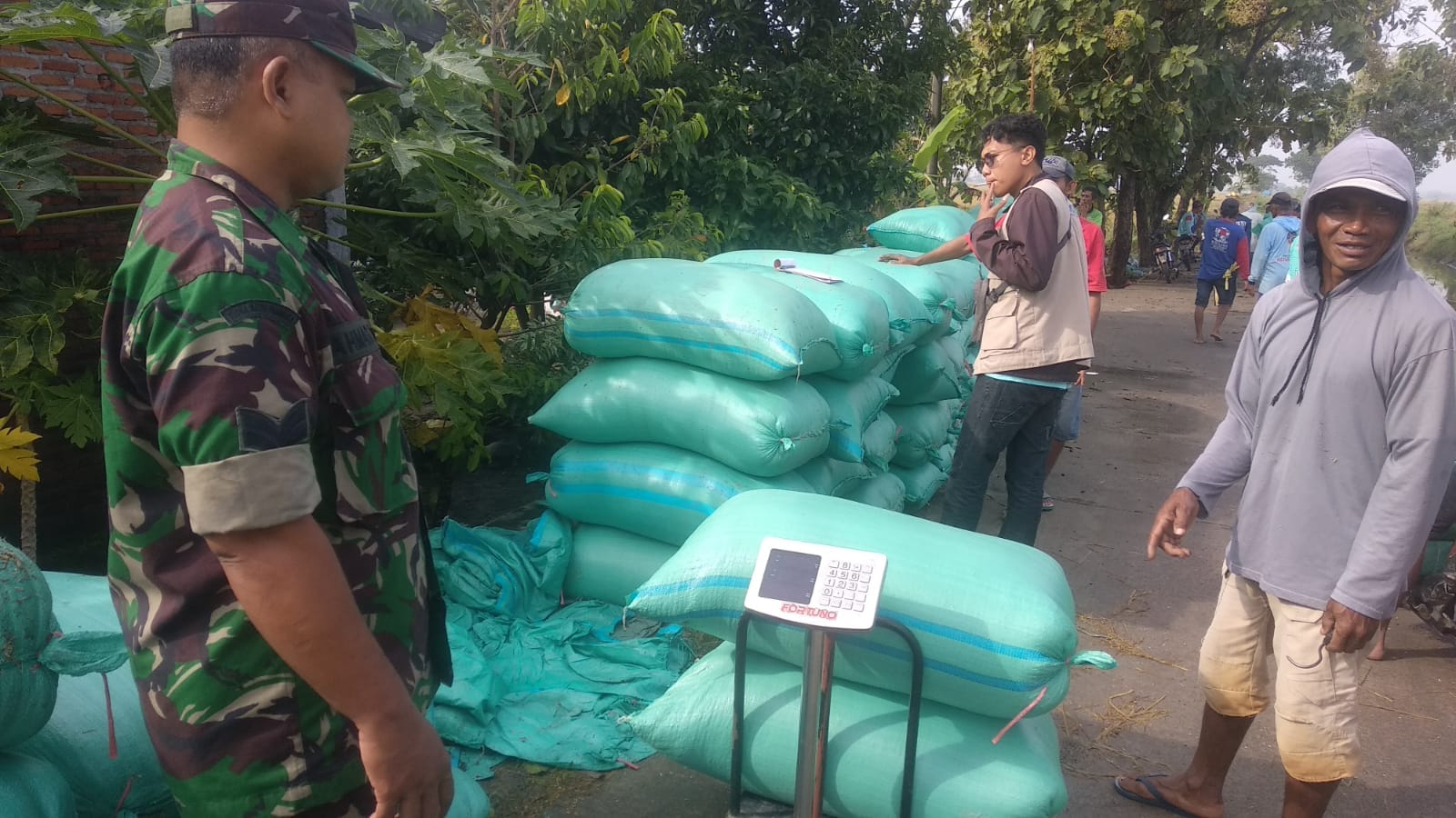 Serma Ahmad setempat hadir langsung di lokasi panen untuk memantau proses penimbangan dan distribusi gabah hasil panen warga.