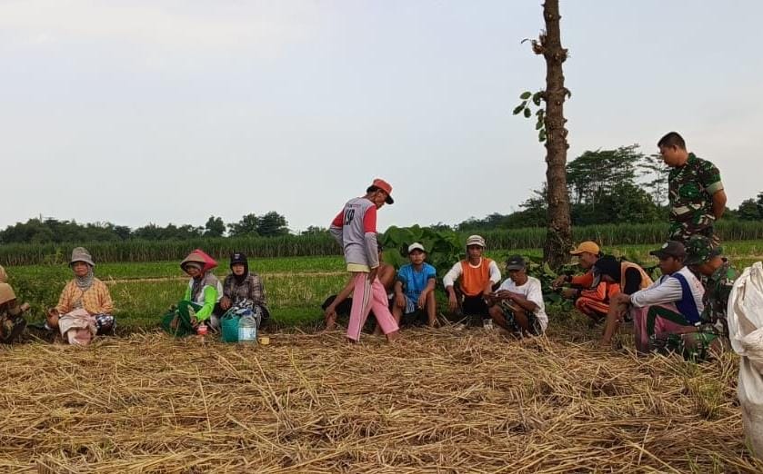 Komsos itu dilakukan secara langsung di area persawahan, dimana Babinsa berinteraksi dengan para petani yang tengah melakukan aktivitas pertanian.