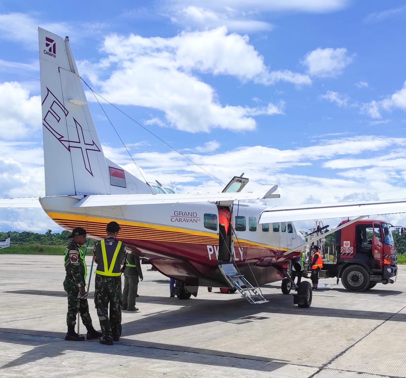 Dari Timika, kami tidak lagi menggunakan pesawat jet besar. Kami harus berganti ke pesawat Karavan, sebuah pesawat perintis mungil yang hanya mampu memuat empat hingga lima penumpang saja.