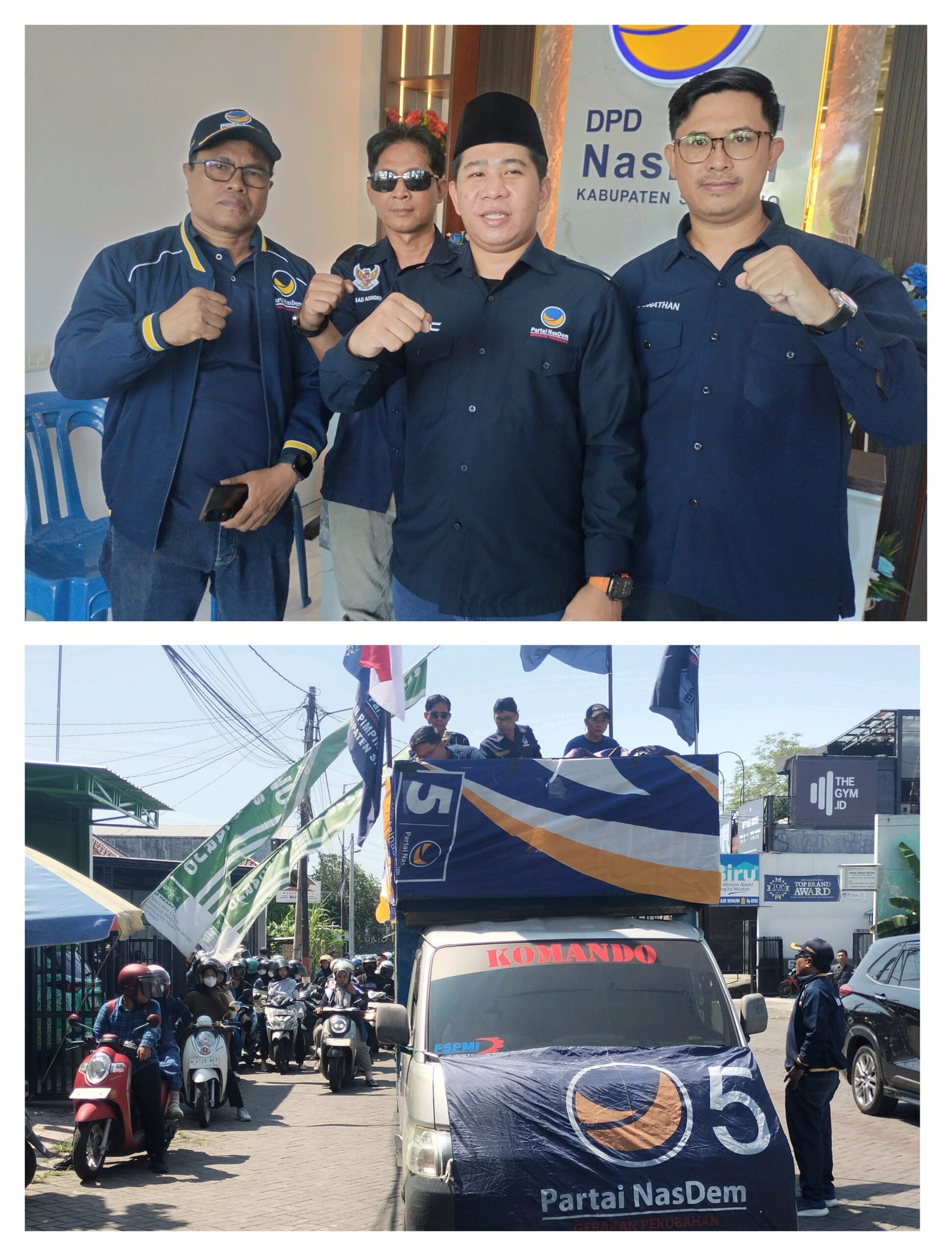 “Hari ini, total sekitar 200 orang pengurus Partai Nasdem Sidoarjo akan bergabung dengan massa aksi dari DPD Partai Nasdem Gresik dan Surabaya berkumpul di kantor DPW Partai Nasdem Jawa Timur. Aksi ini digelar sebagai bentuk protes atas terbitnya liputan utama Majalah Tempo yang berujung melukai Ketua Umum Surya Paloh dan Partai Nasdem,” ucap Zakaria Dimas Pratama melalui pengeras suara di atas mobil komando, Rabu (15/4/2026).