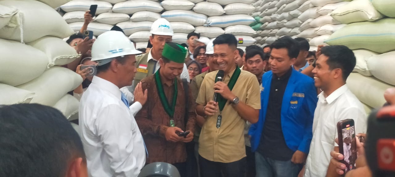 Menteri mempersilakan mahasiswa masuk. Dialog berlangsung di tengah tumpukan beras. Ia menyampaikan pernyataan secara langsung. “Silakan mahasiswa, silakan cek seluruh gudang. Di mana pun berada,” kata Mentan Amran.