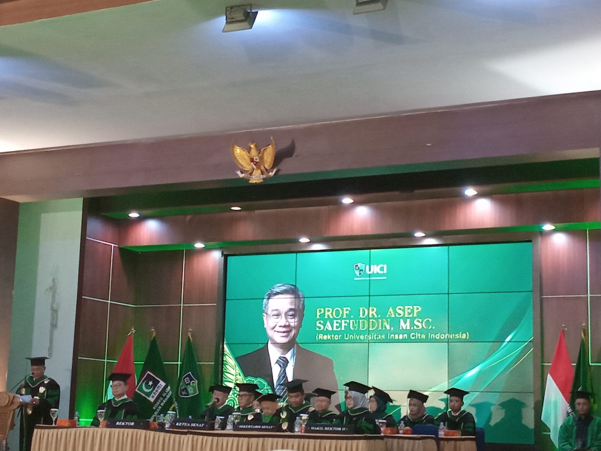 Rektor UICI, Prof. Asep Saefuddin, dalam sambutannya menyampaikan prosesi wisuda tahun ini digelar secara hybrid sehingga wisudawan dari berbagai daerah tetap dapat mengikuti momen bersejarah ini tanpa terbatas oleh jarak dan waktu.