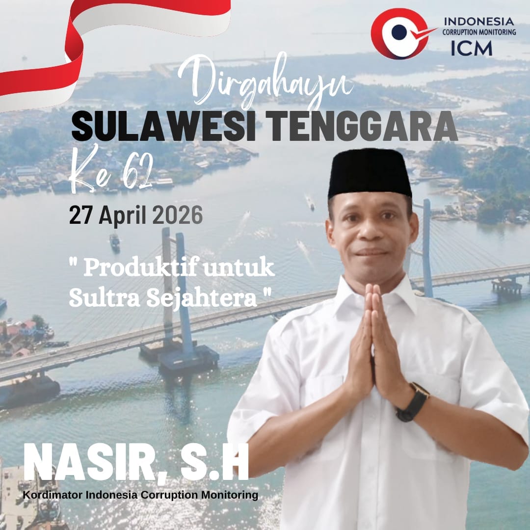 Indonesia Corruption Monitoring (ICM) mendorong Pemerintah Provinsi Sultra agar menjadikan semangat “Bebas Korupsi” sebagai fondasi utama dalam tata kelola pemerintahan, bukan sekadar slogan seremonial tahunan.