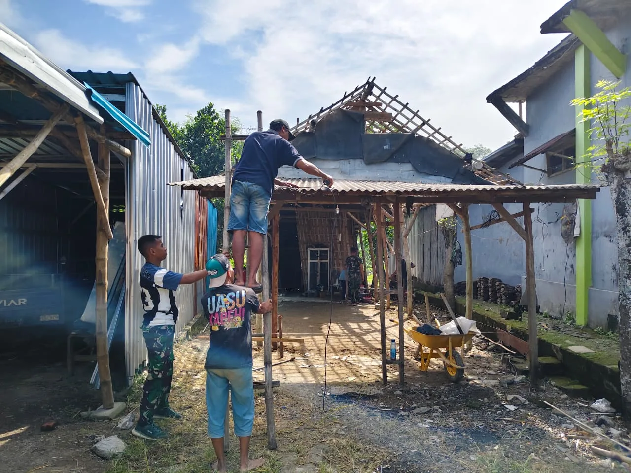 Pada Minggu (26/4/26), Satgas TMMD yang dipimpin Serda Setyo dari Yonif Raider bersama masyarakat setempat bahu-membahu membongkar bagian atap yang sudah lapuk. Proses dilakukan dengan tertib dan mengutamakan keselamatan kerja. Kehadiran warga membuat pekerjaan menjadi lebih ringan dan cepat selesai.