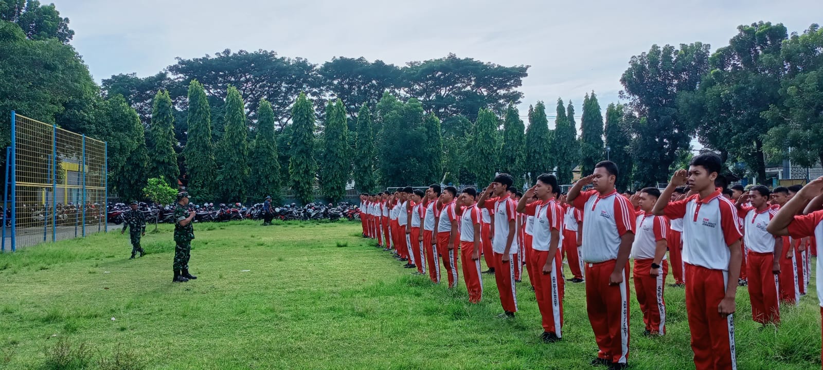 Jombang, NUSANTARAPOS- Anggota Koramil Jombang, Serma Adwin Dwi Harianto, memberikan pembekalan soal Pelatihan Baris-Berbaris atau PBB untuk pelajar di SMK Dwija Bhakti 2 Kecamatan Jombang, Kabupaten Jombang pada Selasa (28/04/2026).