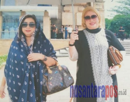 Otty Hari Chandra Ubayani dan Nadrah Izahari ketika tiba di Taman Makam Pahlawan Kalibata menghadiri pemakaman Ani Yudhoyono.