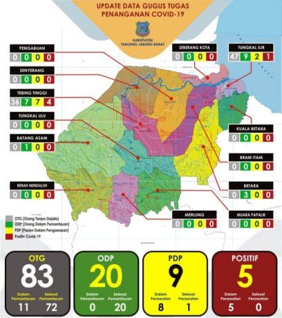 Juru Bicara Tim Gugus tugas penanganan Covid-19 Kabupaten Tanjung Jabung Barat, Ir.H.Taharuddin mengatakan 11 orang tanpa gejala (OTG) merupakan santri Temboro asal Kecamatan Tebing Tinggi yang saat dalam pemantauan.