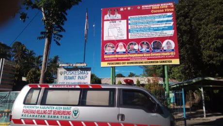 ACEH, NUSANTARAPOS,-Pukesmas sama Tiga yang berkedudukan Dicot Seumereung Kecamatan Sama Tiga Kabupaten Aceh Barat, kini tetap mejaga jaga jarak tiap jam kerja.