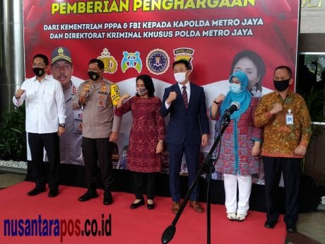 Jakarta, Nusantarapos – Kapolda Metro Jaya Irjen Nana Sujana hari ini menerima penghargaan dari Menteri Pemberdayaan Perempuan dan Perlindungan Anak (KPPPA) I Gusti Ayu Bintang Darmawati serta dari perwakilan Federal Bureau of Investigation (FBI) John Kim.
