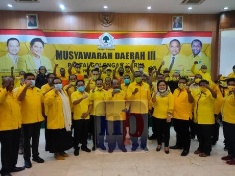 Usai menerima surat mandat penundaan Musda Golkar Papua Barat para kader berfoto bersama.