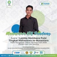 Bandung, Nusantarapos – Muhammad Irfan Fauzi, mahasiswa Jurusan Komunikasi Penyiaran Islam (KPI) Fakultas Dakwah dan Komunikasi (FDK) UIN Sunan Gunung Djati Bandung angkatan 2017 ini berhasil meraih Juara 1 Lomba Membaca Puisi Tingkat Mahasiswa se-Nusantara dalam rangka Pekan Budaya FAH 2020 yang diselenggarakan oleh Dewan Mahasiswa Fakultas Adab dan Humaniora UIN Syarif Hidayatullah Jakarta pada tanggal 05-24 Oktober 2020.