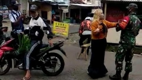 BOGOR,NUSANTARAPOS,-Seorang emak-emak ngamuk saat diingatkan anggota TNI di Garut karena berkeliaran tidak menggunakan masker. Polisi menyatakan perempuan tersebut mengalami gangguan kejiwaan.