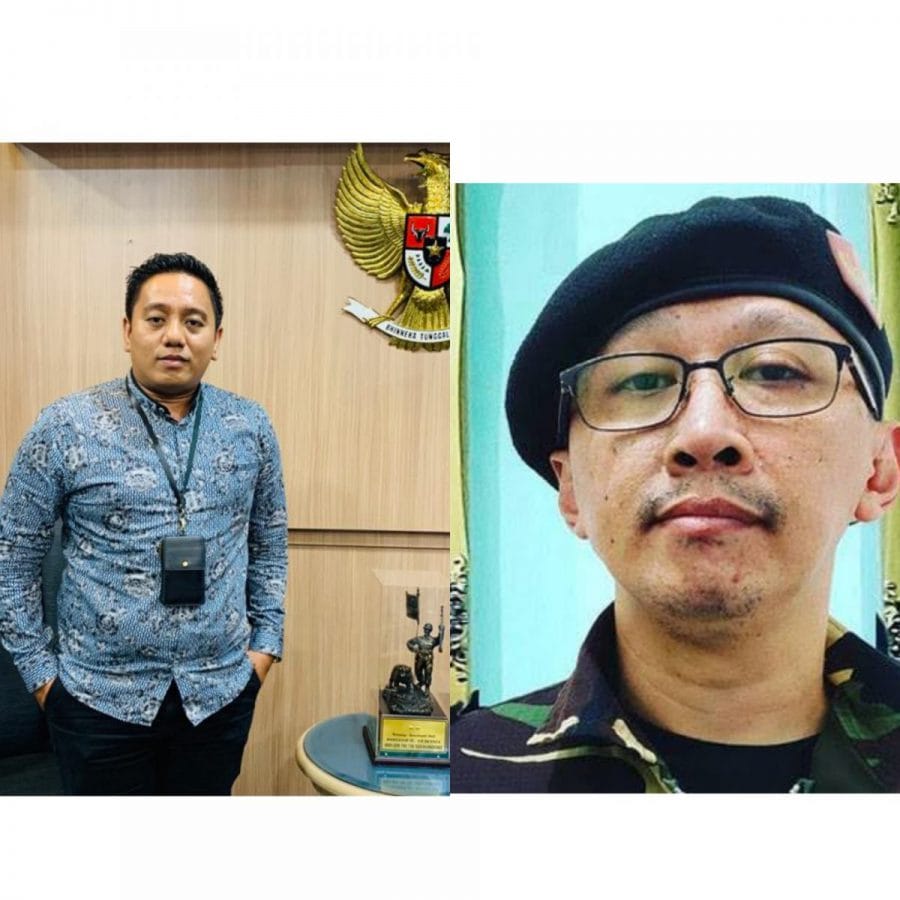 Ketua Umum LKBH Djoeang Indonesia Achmad Taufan Soedirjo (kiri) dan Abu Janda alias Permadi Arya (kanan).