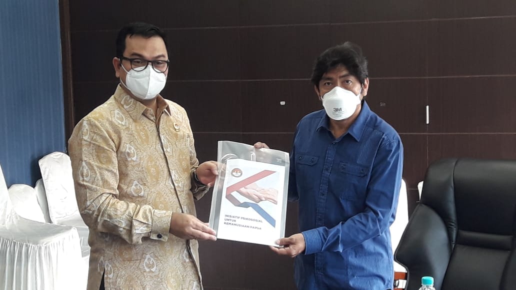JAYAPURA, NUSANTARAPOS – Lembaga Perlindungan Saksi dan Korban (LPSK) menyusun inisiatif psikososial untuk kemanusiaan Papua. Inisiatif itu kemudian diserahkan Wakil Ketua LPSK Maneger Nasution kepada Ketua Dewan Perwakilan Rakyat Papua (DPRP) Johny Banua Rouw di gedung DPRP, Jayapura, Rabu (10/2/2021).