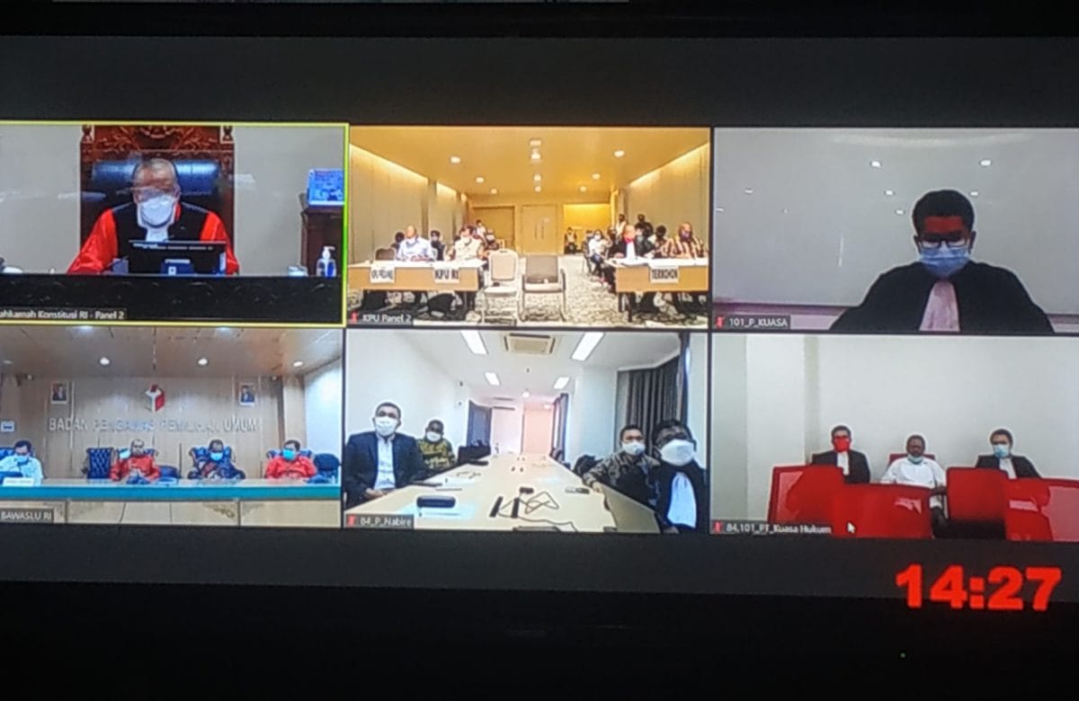 Jakarta, NUSANTARAPOS.CO.ID – Mahkamah Konstitusi (MK) kembali menggelar sidang lanjutan sengketa Pillada Kabupaten Nabire Tahun, sidang dilakukan di Panel II Mahkamah Konstitusi, Jakarta, Jumat (26/2/2021). Adapun agenda sidang adalah mendengarkan keterangan saksi, saksi ahli serta penyerahan dan mengesahkan alat-alat bukti tambahan.