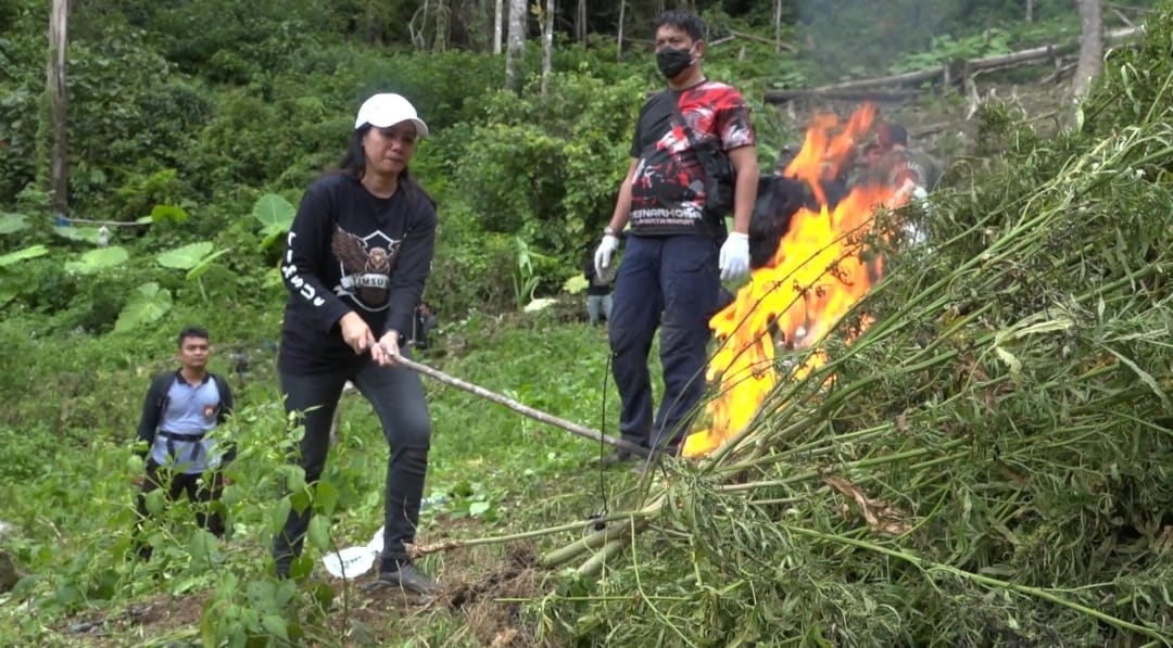 “Kita juga sudah musnahkan ladang ganja ini dibantu oleh Anggota Polres Mandailing Natal dengan cara di bakar,” tegas dia.