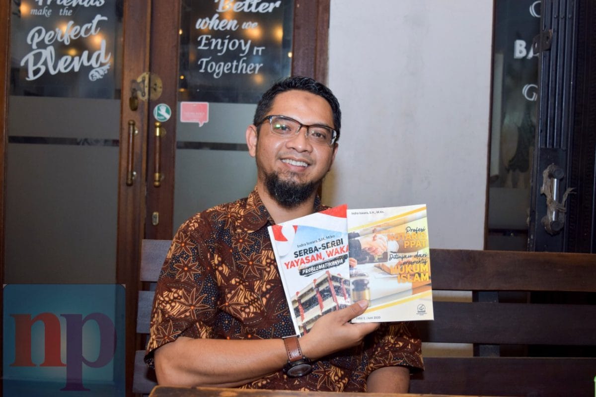 Notaris/PPAT wilayah Jawa Timur Indra Iswara sedang menunjukan buku hasil karyanya.