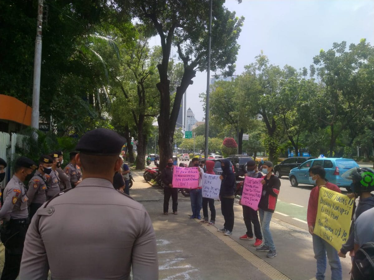 Massa membawa sejumlah poster berisi antara lain audit PT RAJA di proyek pembangunan blok Rokan, usut tuntas dugaan korupsi PT SEI PGN di blok Muria U$ 70Juta, usut tuntas dugaan mal kelola Pajak PGN 3 Triliun dan usut tuntas dugaan korupsi FSRU Lampung U$ 100 juta serta ada juga poster berbunyi Pak Menteri BUMN segera pecat direksi PGN.